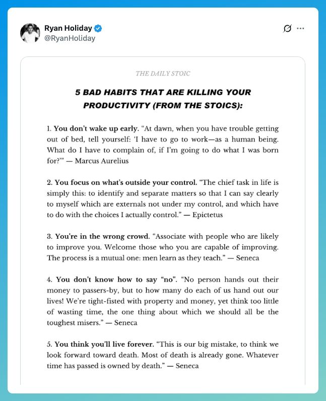 Ryan Holiday celnie na X (dawny Twitter) – warto się zapoznać i robić inaczej.