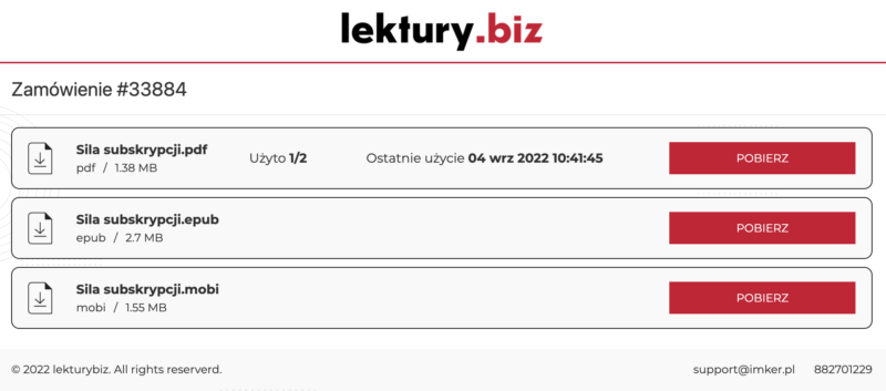 Dla wszystkich systemów działających na SalesCRM zaktualizowaliśmy wygląd stron, z których Klienci mogą pobierać wersje cyfrowe zamówionych przez siebie produktów (ebooków, plików czy audiobooków).