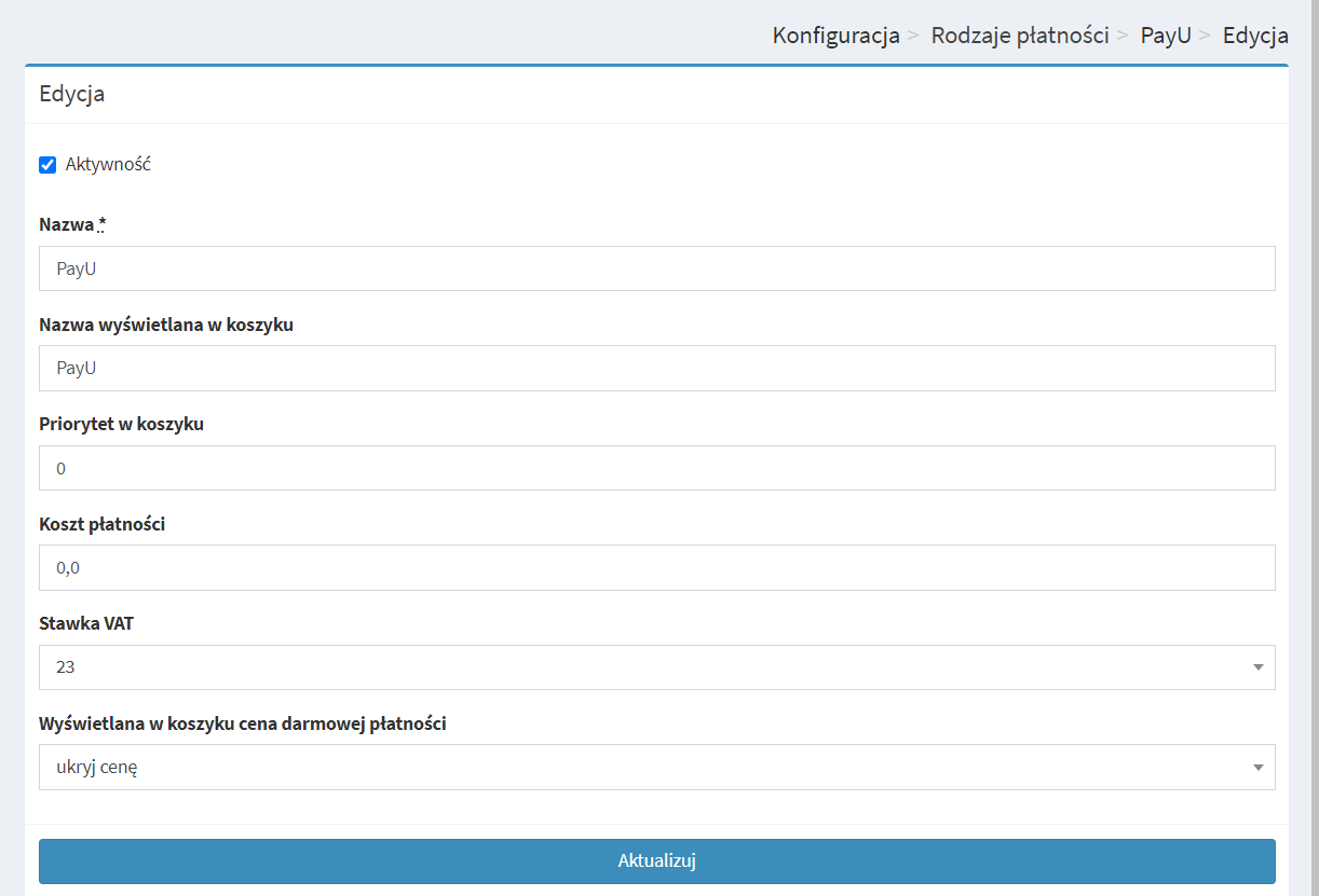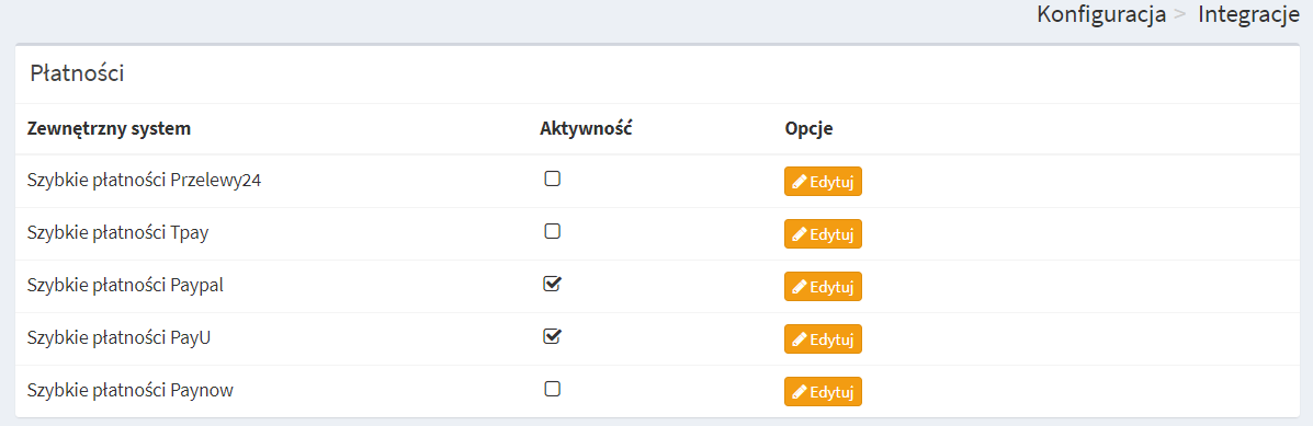 Konfiguracja > Rodzaje płatności