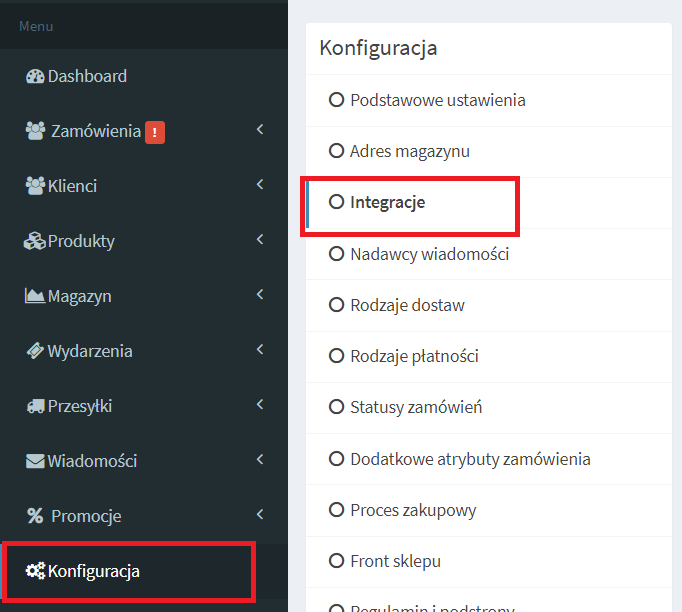 1. W panelu administracyjnym SalesCRM przejdź do opcji Konfiguracja > Integracje.