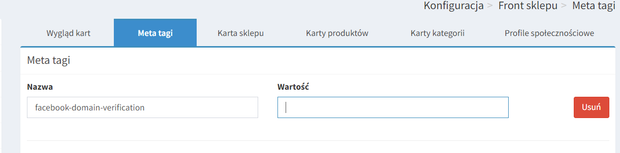 5. Gdy ukończysz integrację, przejdź w panelu SalesCRM do Konfiguracji Front sklepu > zakładka Meta tagi.