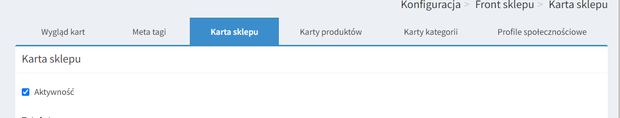7. Ostatnim krokiem jest włączenie aktywności karty sklepu. Zakładka znajduje się obok meta tagów.