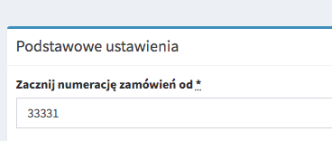 2. W polu Zacznij numerację zamówień od * wpisz odpowiednią liczbę, która ma rozpoczynać numerację zamówień w naszym sklepie.