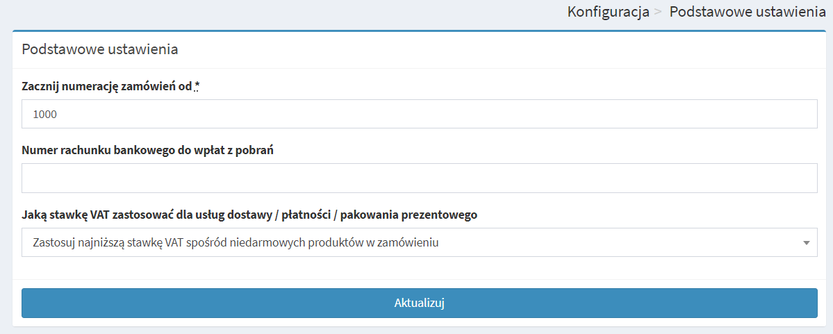- Zastosuj najniższa stawkę VAT spośród nie darmowych produktów w zamówieniu