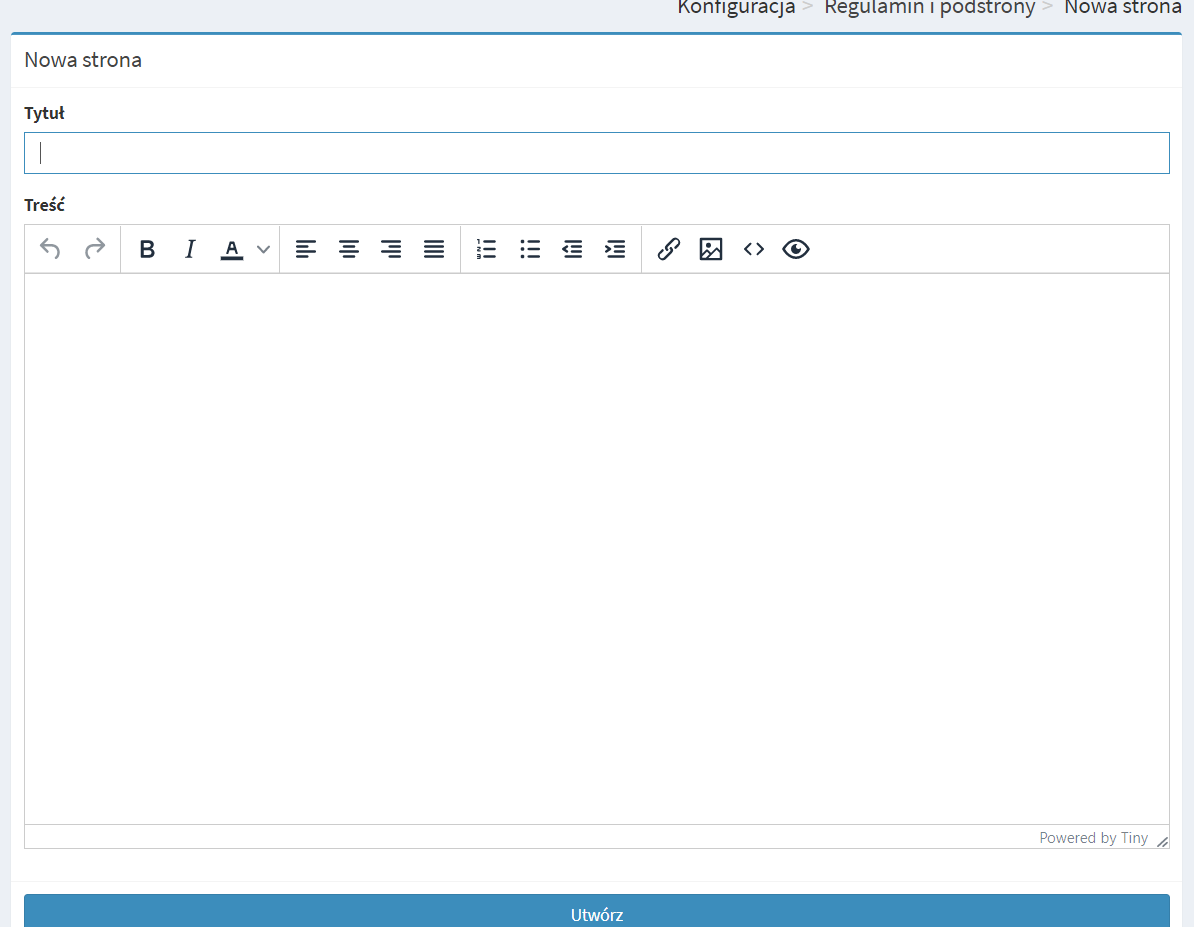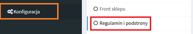 1. Przejdź do menu > konfiguracja > regulamin i podstrony.