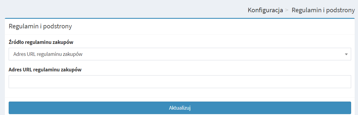 - regulamin zakupów – wybierz tę opcję, gdy chcesz po prostu wkleić tekst regulaminu, a następnie kliknij Aktualizuj.