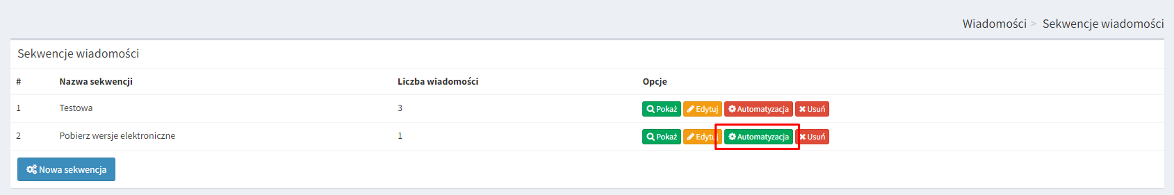 Kolejnym krokiem jest stworzenie automatyzacji, która pozwala na określenie, w jakich przypadkach dana sekwencja ma zostać wysłana do klienta.