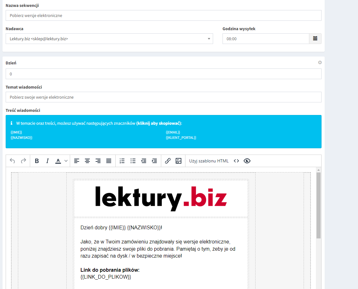Możemy skorzystać z szablonu HTML, dzięki temu, wiadomość będzie prezentowała się efektownie.