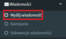 1. Funkcję Wyślij wiadomość w SalesCRM znajdziesz w menu po lewej stronie. Wybierz Wiadomości > Wyślij wiadomość.